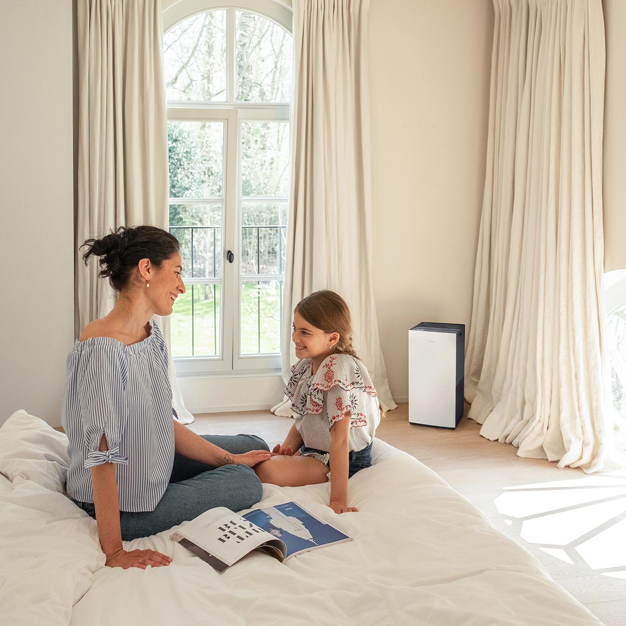 De Daikin MC80Z luchtreiniger bedien je overal vandaan met de Onecta app, of gewoon via zijn overzichtelijk bedieningspaneel. Daikin MC80Z verzorgt luchtreiniging in grote ruimtes tot maximaal 124 m². De MC80Z heeft een hoogwaardig elektrostatisch HEPA-filter, een geurfilter en een Streamer-unit waarmee hij de lucht nauwkeurig zuivert. Met zijn sensoren monitort hij de luchtkwaliteit en geeft die met gekleurde led-symbolen weer. Fluisterstil, de luchtreiniger is nauwelijks hoorbaar. Daikin MC80Z is een van de stilste luchtreinigers op de Europese markt.